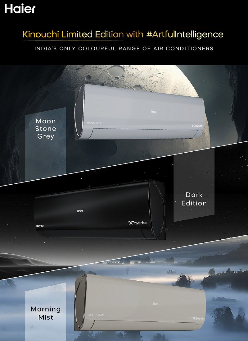 Haier Appliances India has launched the Kinouchi Limited Edition Air Conditioners, introducing India’s first colorful AC range that combines aesthetic appeal with advanced cooling technology. Available in Black, Morning Mist, and Moonstone Grey, the new series caters to consumers seeking both style and high-performance cooling solutions.