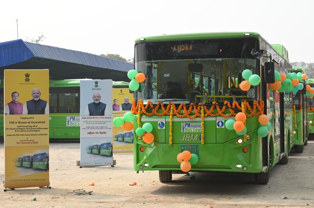 Prime Minister Narendra Modi today flagged off 200 JBM Ecolife electric buses from Guwahati under the PM e-Bus Sewa Scheme, marking a major step in India’s transition toward clean and sustainable public transport. The deployment spans Guwahati, Bhavnagar and Nagpur, with 100 buses allocated to Guwahati and 50 each to the other two cities. With this rollout, JBM’s total electric bus fleet in India has crossed 3,200 buses operating across multiple states.